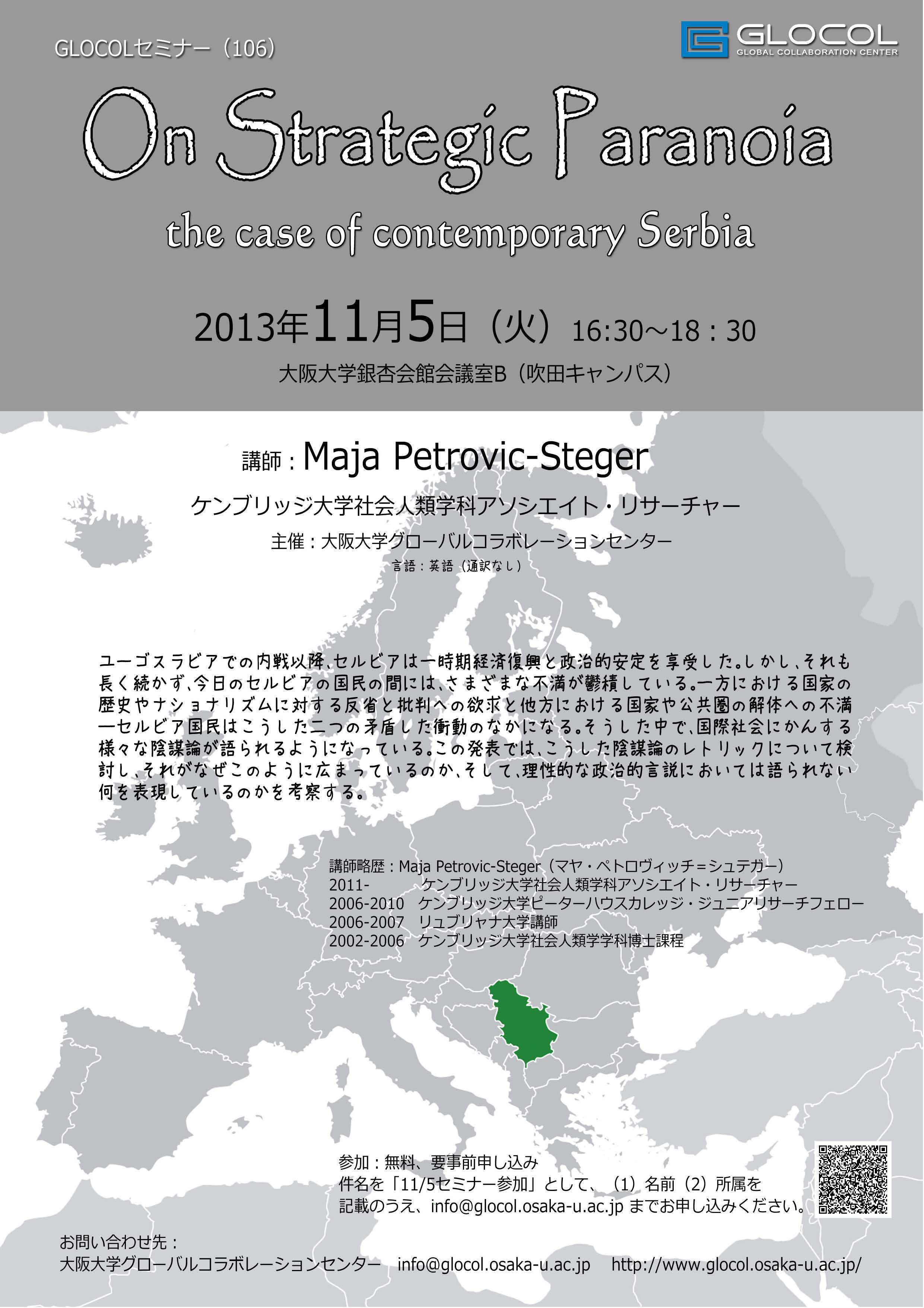 ABSTRACT: Today, more than two decades after the onset of the 1990s wars in former Yugoslavia, many people in Serbia feel no happier with local, European and world politics. After a short-lived period of economic growth and political stability, the country has returned to a state of dissatisfaction and uncertainty. Many want to demystify and confront wartime nationalism, which is increasingly felt as a historical and political burden. Yet they often resist the manner in which they feel that some projects of reconciliation and of European integration are being forced upon them. Their suspicion is that such projects hide hidden agendas. Tensions arise between these two simultaneous needs, for self-reflection on and criticism of the country’s history on the one hand, and for a freedom to contest the perceived public denigration of Serbia, on the other. In such a context, certain past events as well as predictions of the future are interpreted through various conspiratorial narratives. Paranoid claims seems to serve as an organising device through which certain social conditions and predicaments are evaluated. The paper proposes to analyse what might be termed ‘auto poetic and strategic paranoid observations’ through coming to terms with the manner, or the rhetorical style, in which they are uttered. The manner is one of exaggeration. Importantly, paranoid worldviews, that exaggerate in order to attest specific historical events and their logic, at least on the subjective level, have a political purchase in contemporary Serbia denied to more rational forms of discourse.