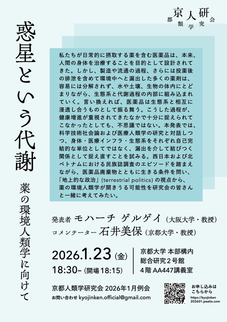京都人類学研究会2026年1月例会「惑星という代謝:薬の環境人類学に向けて」